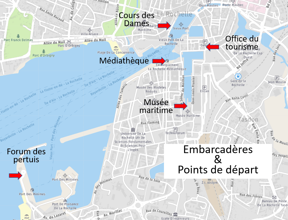 VOIR EN DESSOUS LE PLAN DES EMBARCADERES ET DES POINTS DE DEPART